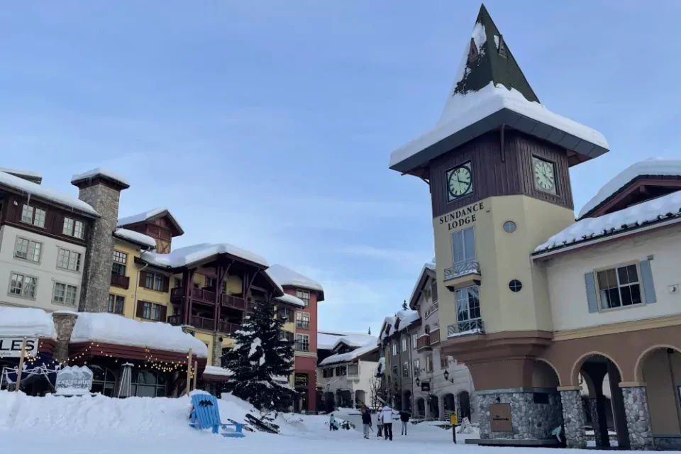Geniet in Sun Peaks van het gezellige centrum met pastelkleurige huizen